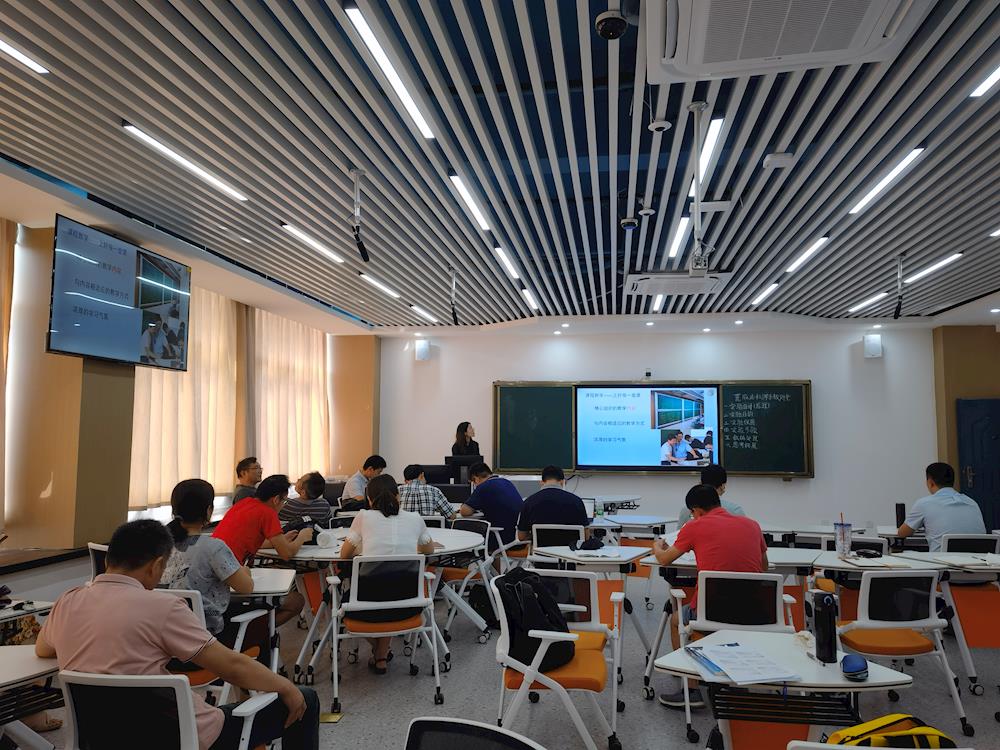 首先由杨淑青老师报告嘉兴青年教师基础课教学培训的主要内容和心得体会。杨老师结合自己体会,从教学就是心理学科学,如何激发学生学习兴趣,让学生从被动学习到主动学习从而提升学习效果,给出了专家的意见和自己的感受;另外谈到当下课程思政,与会的专家意见是课程的全流程要素都可以加入思政,她还通过案例给出了简单示范。